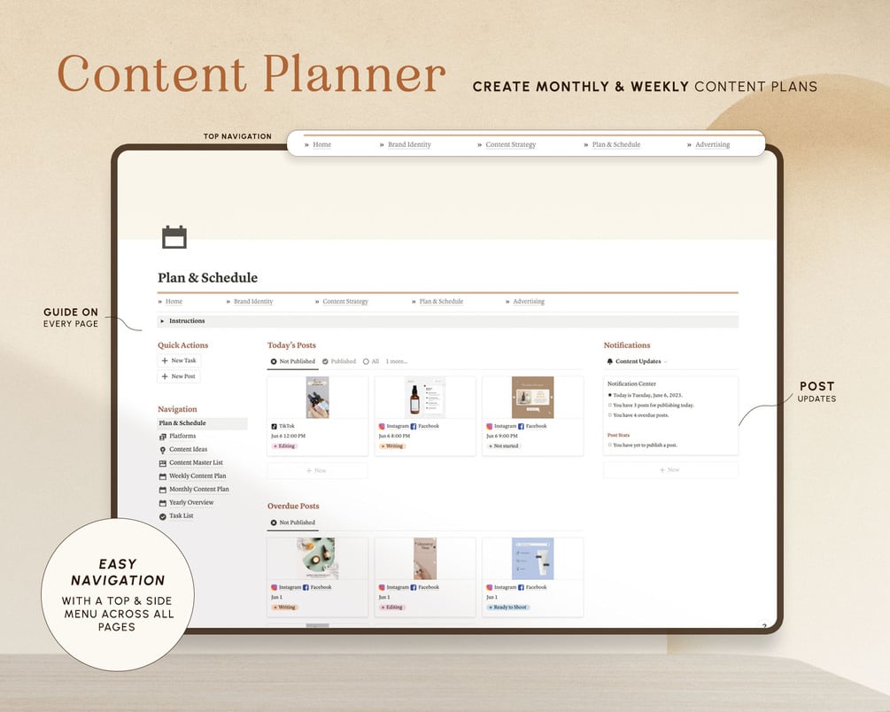 - Easy website-like navigation with a top & side menu, so you don't have to keep going to back to the Notion sidebar!